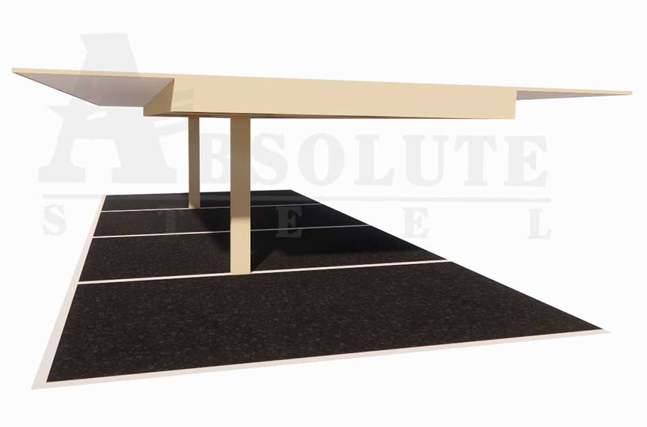 The semi-cantilever carport utilizes engineering’s cantilever principle. With greater balance of stresses than a full cantilever, it can provide the same overhead protection with reduced structural demands – and reduced cost.